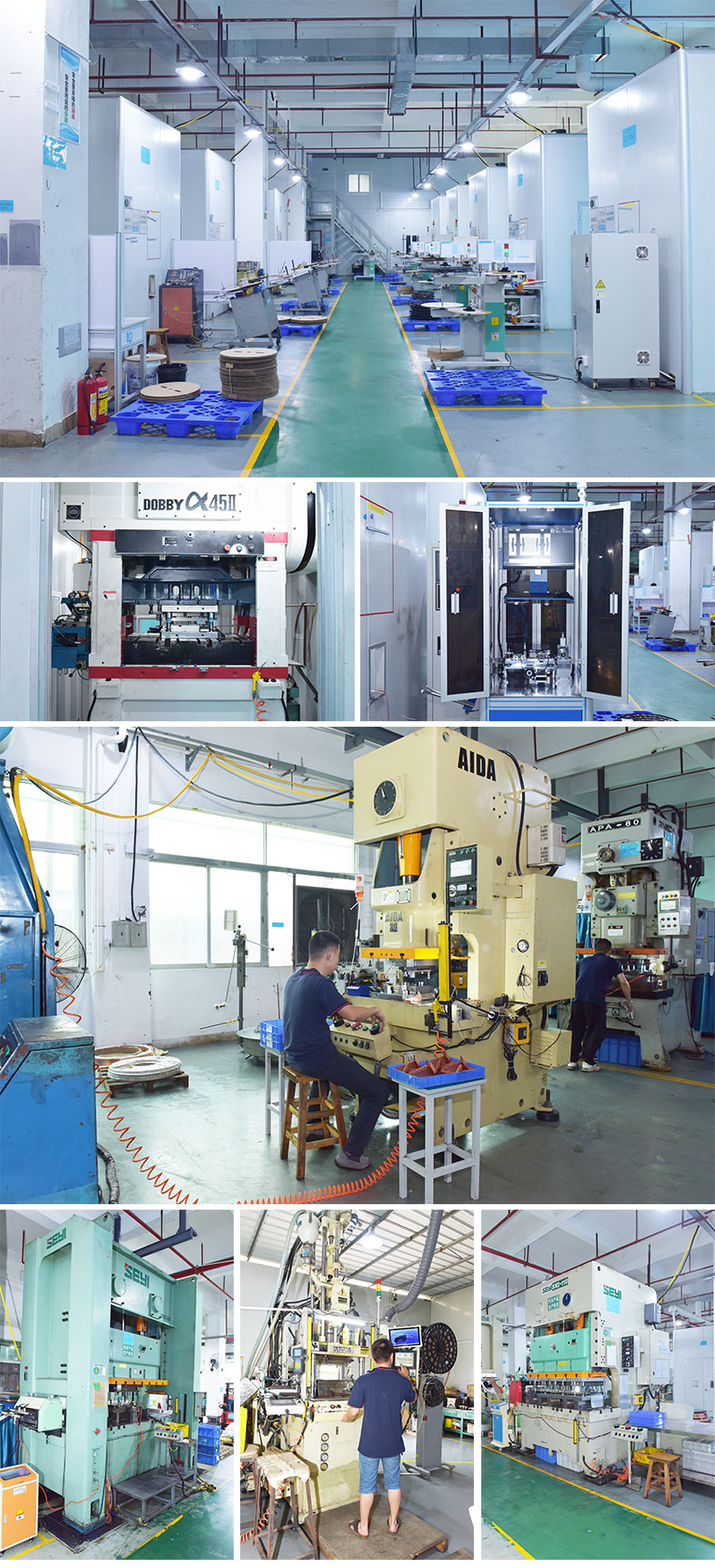 模具部:模具部專業設計加工各類五金沖裁、拉伸、冷鐓、成型、彎曲等模具.包括各類五金端子模、彈片模、汽車連接器,新能源電池五金件,及各種精密電子五金連續模、硬質合金(鎢鋼)拉伸及成型模具等。
